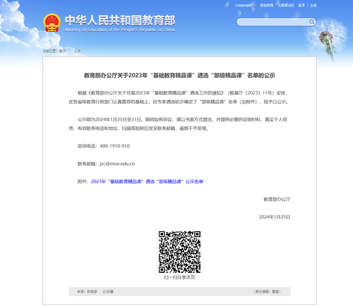 来源:http://www.moe.gov.cn/jyb_xxgk/s5743/s5745/202401/t20240125_1112313.html