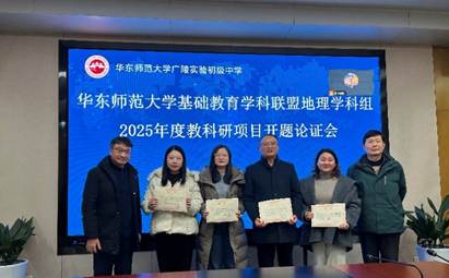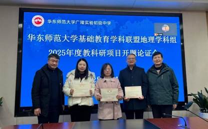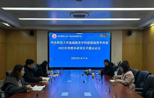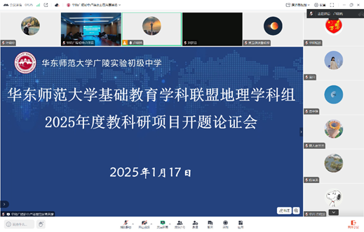 2025年1月17日,华东师范大学基础教育学科教研联盟地理学科组在华东师范大学广陵实验初级中学召开2025年度教科研项目开题论证会。会议采用了线上和线下相结合的方式进行。参加会议的成员有华东师范大学陈昌文老师、卢晓旭老师、18个课题组成员,以及华东师范大学多所附属学校的老师和其他联盟个人成员。会议由联盟地理学科组成员姜慧老师主持。