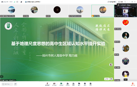 (图为扬州市树人高级中学的陶力越老师课题汇报)